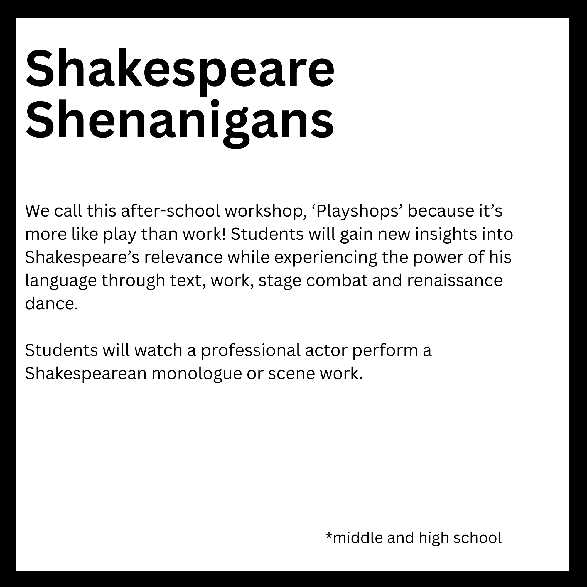 Students will have the opportunity to sign up for seven weeks of complimentary after-school performing arts classes, beginning the week of March 9th, leading to a final performance on May 1st at Woodland Hills Elementary.