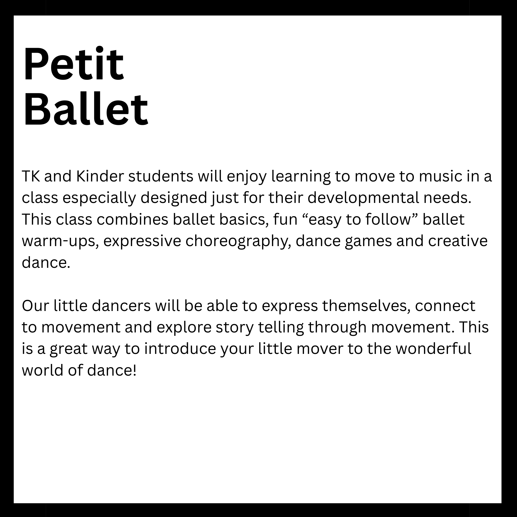 Come join the fun! participate in a class you already love or try something brand new as we celebrate our third year bringing performing arts to the Woodland Hills community!
